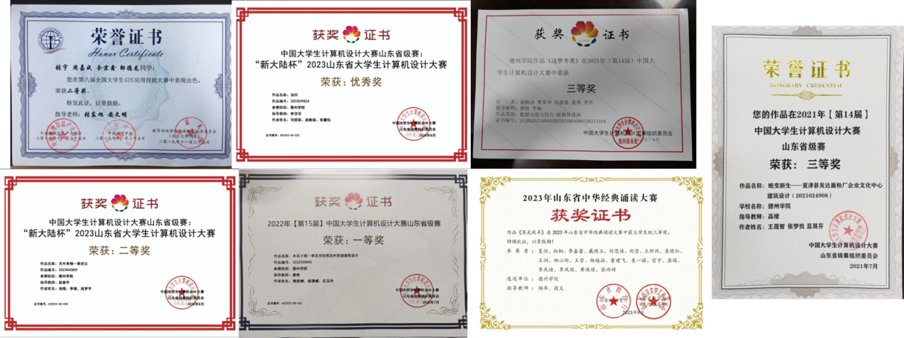 本专业学生参加挑战杯、中国大学生计算机设计大赛、全国高校数字艺术设计大赛、全国大学生“创新、创意、创业”网络商务挑战赛、山东省大学生创意文化节环境艺术设计大赛等国家级、省级比赛,多次获奖。
