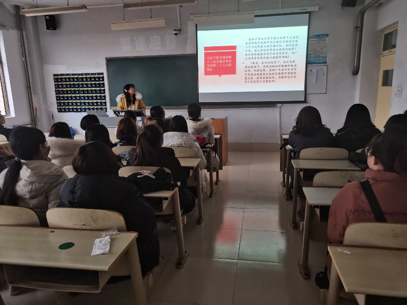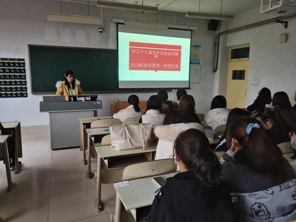 为了深入学习十九届五中全会精神,加强基层团组织的凝聚力。2020年11月26日,2019级旅游一班在体育楼0512教室举行主题团日活动。
