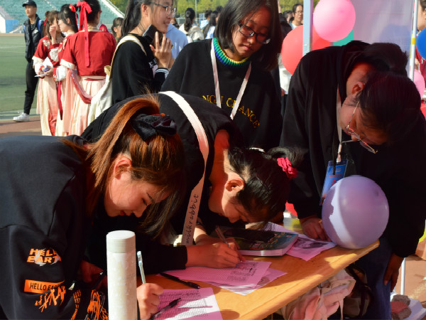 本次活动共有55个社团参加,其中包括英国365集团公司下属的青木戏剧社、心语协会以及木槿农业创新社三个社团,同学们共分为三个批次进入场地,队伍秩序井然。在观看了各社团带来的街舞,空竹,模特走秀,舞龙舞狮,汉服舞蹈等精彩表演后,同学们纷纷对加入社团表现出了极大的兴趣。活动过程中, 全校各个社团的志愿者们都认真负责,热心服务,我院各社团成员更是积极认真,热情的向同学们介绍了各自社团的优点与活动,同学们都踊跃报名,积极参加,现场气氛十分热烈。