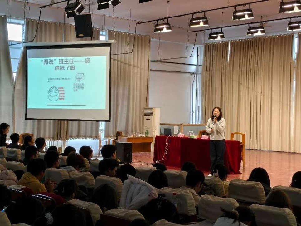 李校长结合自身丰富的工作经历与经验,从日常班级管理实例切入,以幽默风趣的语言向同学们分享了多年班主任工作的深刻体会。她围绕 “创意翻新激情” 主题,详细介绍了班级创意实事工程,为同学们展示了创新在班级管理中的积极作用,提供了新颖且实用的班级管理思路与方法。李校长强调,在教师生涯中,班主任经历对于教师成长具有重要意义,一位未曾担任班主任的老师不能称之为最完美的老师。班级管理成功的关键在于热爱学生,“严”与“爱”贯穿整个教育过程始终,成功的班主任或许有不同的管理方式,但热爱学生是共通的优秀品质。讲座最后,李校长寄语同学们:“遇见,是一切美好的开始;陪伴,才是最幸福的告白”,激励同学们在未来的教育工作中积极投入班级管理,用心陪伴学成长。