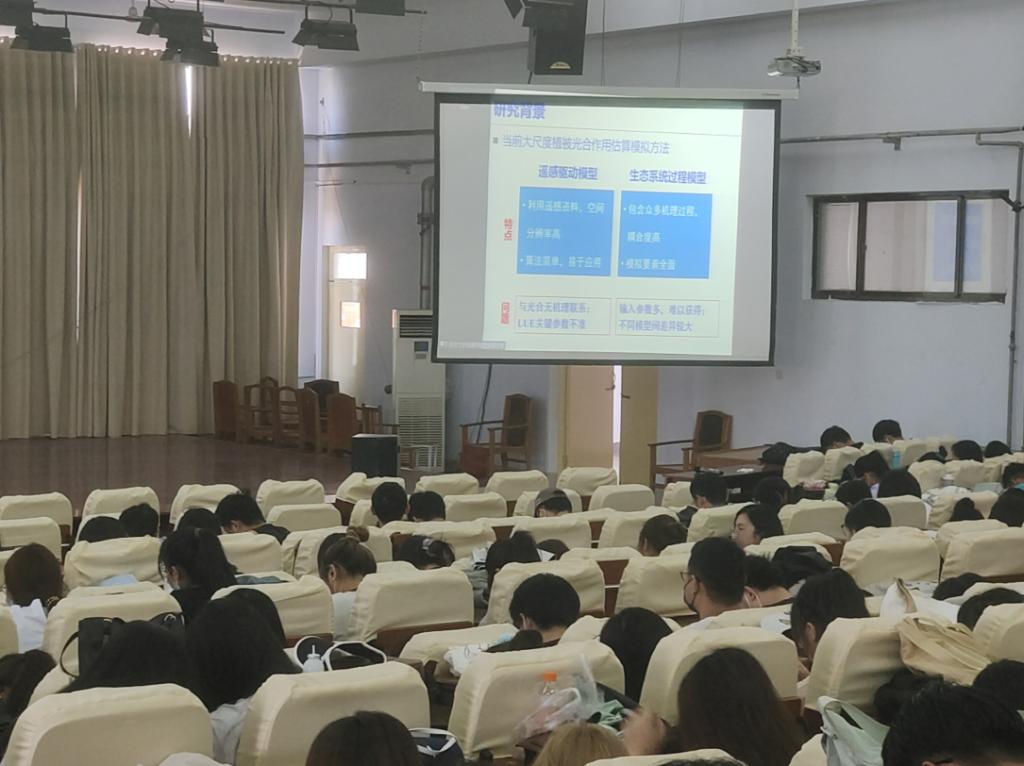 本次大讲堂由南京大学张永光教授、徐志伟副教授围绕2020年度中国地理科学十大研究进展入选成果“全球尺度植被CO2施肥效应变化趋势”和“沙丘双稳态的发现及其形成机制”做相关主题报告。会议期间同学们认真听讲,现场秩序良好。
