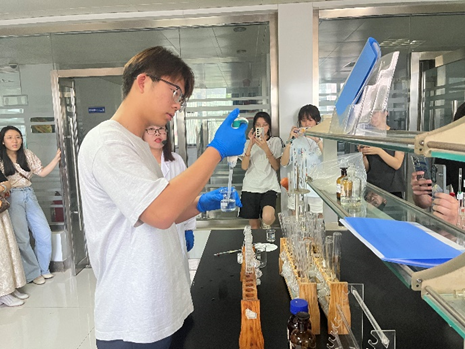 在山东锦铭检测技术有限公司,学生们系统学习了气相色谱法的原理与应用,以非甲烷总烃检测为例,深入理解了物质分离的色谱原理,并全程参与了从开机预热、参数设置到氢火焰离子化检测器(FID)分析及数据处理的实操训练。此外,学生们还实践了环境噪声与空气污染物监测,包括噪声仪校准、气象参数测定、二氧化硫和氮氧化物采样及分光光度法分析,全面掌握了监测技术的标准化流程。