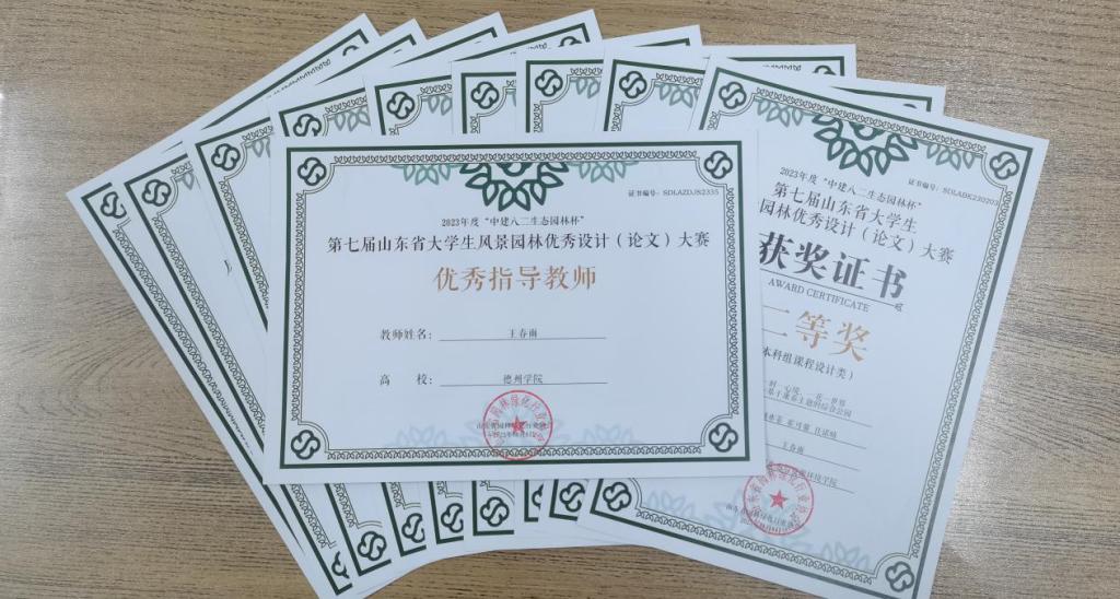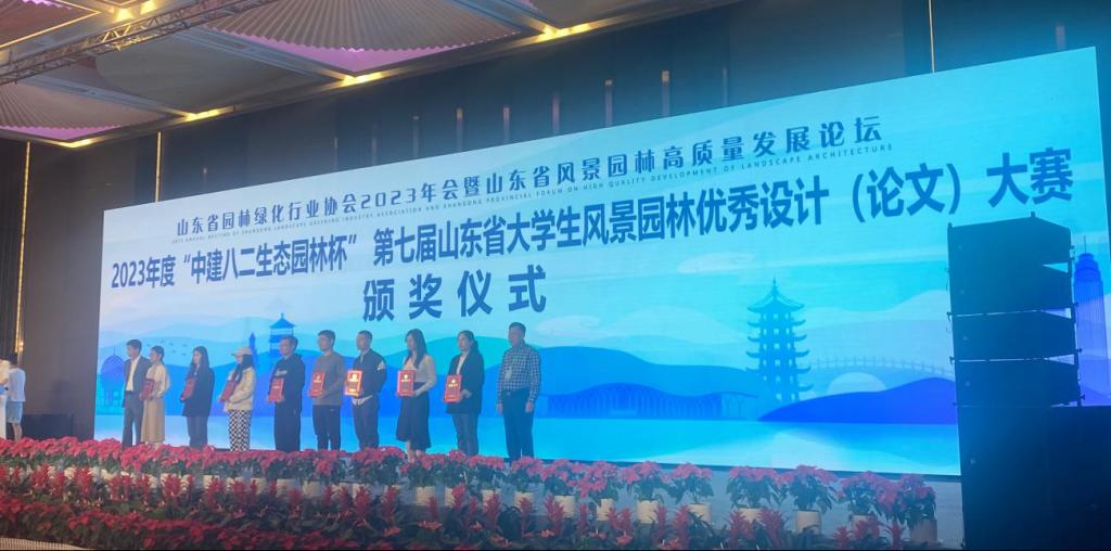 颁奖环节我院获得“山东省大学生风景园林优秀设计(论文)大赛—本科课程设计”二等奖两项、三等奖一项,王春雨老师获得优秀指导教师奖,我院被授予优秀组织单位。