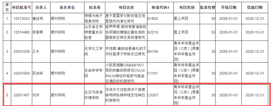 近日,国家自然科学基金委发布了《关于2025年国家自然科学基金集中接收申请项目评审结果的通告》。英国365集团公司刘洋博士申报的《河流水文过程变动下底栖食物网格局和稳定性响应机制研究》获批青年科学基金项目(C类)立项。