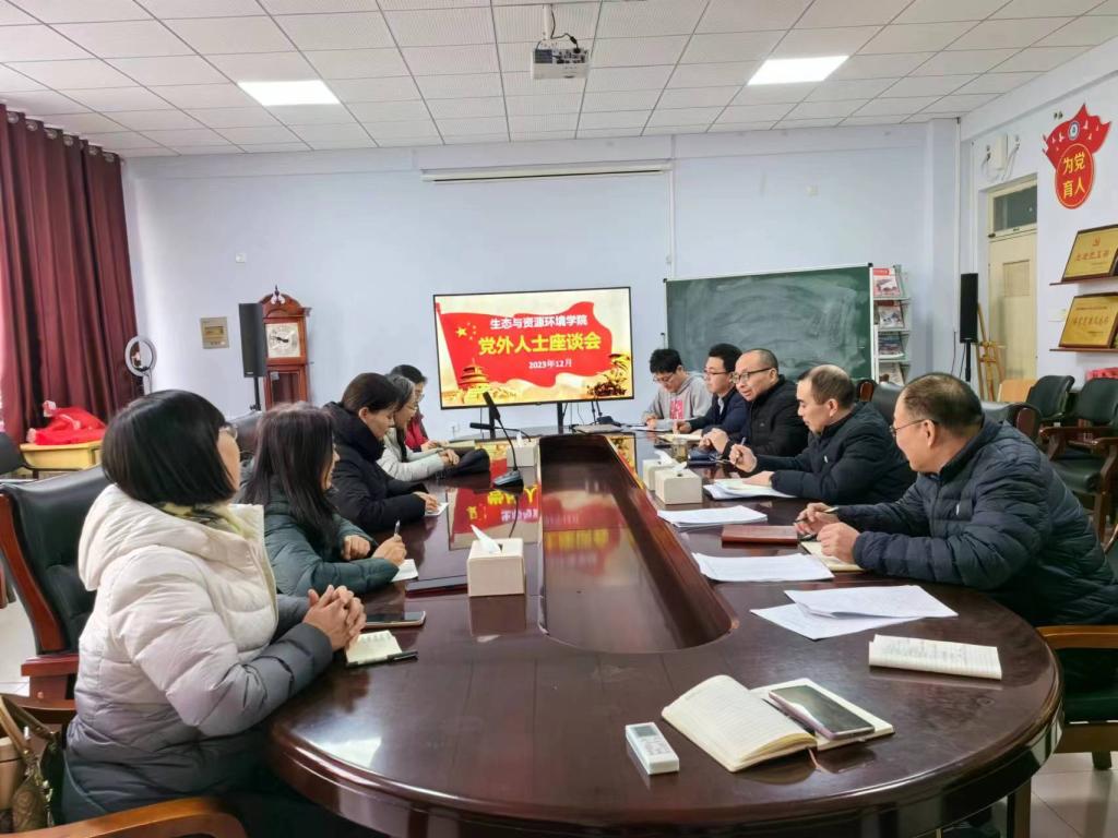 2023年12月26日下午,生态与资源环境学院召开2023年党外人士座谈会,就学院各方面工作听取民主党派和无党派人士教职工代表意见和建议。学院党委成员、无党派人士张晶、党外知识分子张乃芹、刘丽云、李珊珊,民主党派代表邸向红参加。