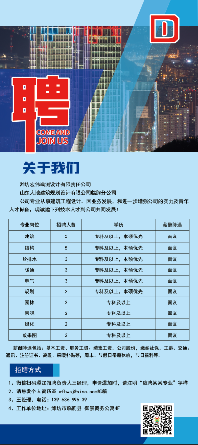 山东大地建筑规划设计有限公司临朐分公司招聘信息