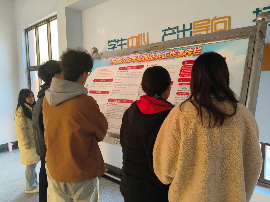 近期,学院举办征兵政策宣讲会,杨振飞老师现场为大家解读征兵政策,并邀请退伍大学生上台进行答疑。他们结合自身的从军经历,分享在部队的成长与收获,为学生们讲述了训练的艰辛,执行任务的难忘瞬间,以及退役后在学业和就业上获得的支持与帮助,针对学生们提出的学业保留、退伍安置等问题,都耐心细致地进行解答。此外,学院在教学楼、宿舍等人员密集场所放置征兵政策宣讲牌,详细介绍了征兵条件、报名流程、优惠政策等关键信息。不仅如此,宣讲团队走进课堂、深入宿舍,利用课余时间向学生们普及征兵知识,与学生们面对面交流,发放征兵宣传手册,切实做到精准宣传,让学生们在日常学习生活中也能及时了解征兵相关内容。