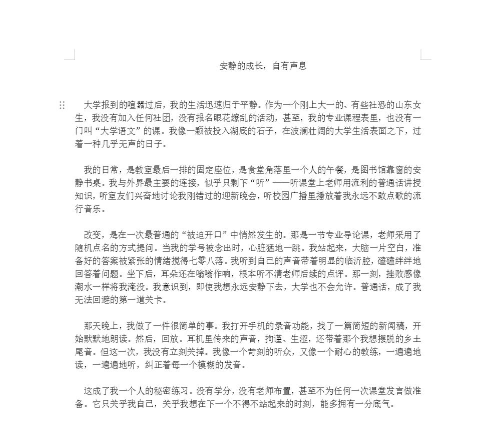本次征文活动以“语言中的中华魂”为创作主题,活动得到学院学生积极响应。此次活动参赛作品题材丰富、情感真挚。有以家书、方言为切入点,讲述语言背后的亲情与乡愁,字里行间满含对传统文化根脉的眷恋;有的聚焦古典诗词、成语典故,剖析其中蕴含的哲学智慧与人文精神,展现对经典语言的深度解读;还有部分作品结合新时代语境,探讨网络语言与传统语言的融合共生,思考语言文化的传承与创新。