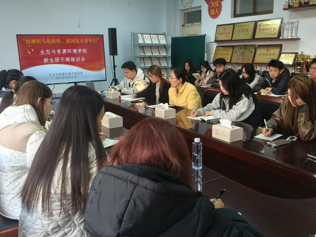 培训会上,学院团委书记李洋洋强调了基层团干部在青年工作中的关键作用,希望大家能始终坚持以服务青年为核心宗旨,主动倾听同学需求、传递组织关怀,充分发挥桥梁纽带作用。同时,本次培训聚焦班级团组织规范化建设、青年思想引领、特色团日活动策划与实施等内容,创新采用“理论讲解 + 案例分析 + 互动交流” 的立体化模式 —— 既通过政策解读明确团工作标准,又结合优秀班级团日活动案例拆解实操方法,系统提升了新生团干部的理论素养与实践能力。2024级环境生态工程团支书马明阳作题为“如何成为优秀共青团干部”的专题分享。他指出,一名优秀的团干部应坚定锚定“思想引领”这一核心职责,主动学习党的创新理论,更要以“实干担当”树立标杆,在工作中冲锋在前,有效凝聚和带动青年。