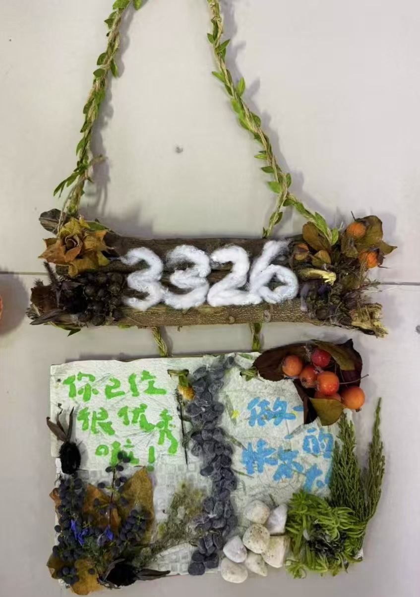 本次活动以宿舍为单位开展,号召同学们变废为宝,利用旧纸箱、塑料瓶、落叶等日常闲置物品。充分发挥创意,将旧物与水彩等艺术形式融合,打造兼具创新性与环保理念的个性门牌。通过团队协作和艺术创作,共同设计制作独具特色的宿舍门牌,让普通门牌蜕变为彰显宿舍个性的标识。既实现资源循环利用,又在动手过程中深化舍友情谊、提升协作默契,每一份作品都凝聚着学子对大学生活的热爱与资源循环利用的践行。
