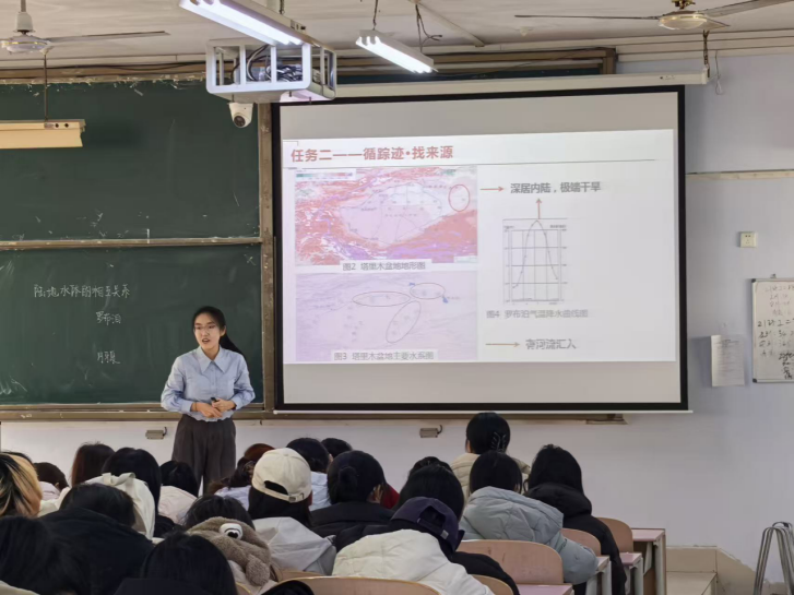汇报展示环节中,13名学生将课堂所学专业知识与教育实习实践经验有机结合,精心设计教学方案、合理安排教学环节,依次呈现了精彩的模拟教学课堂。展示过程中,学生们教学目标明确、教学逻辑清晰,既展现出扎实的地理专业功底与娴熟的课堂教学技能,也彰显了新时代师范生勤学善思、笃行实干的良好精神风貌,赢得了在场师生的一致认可。