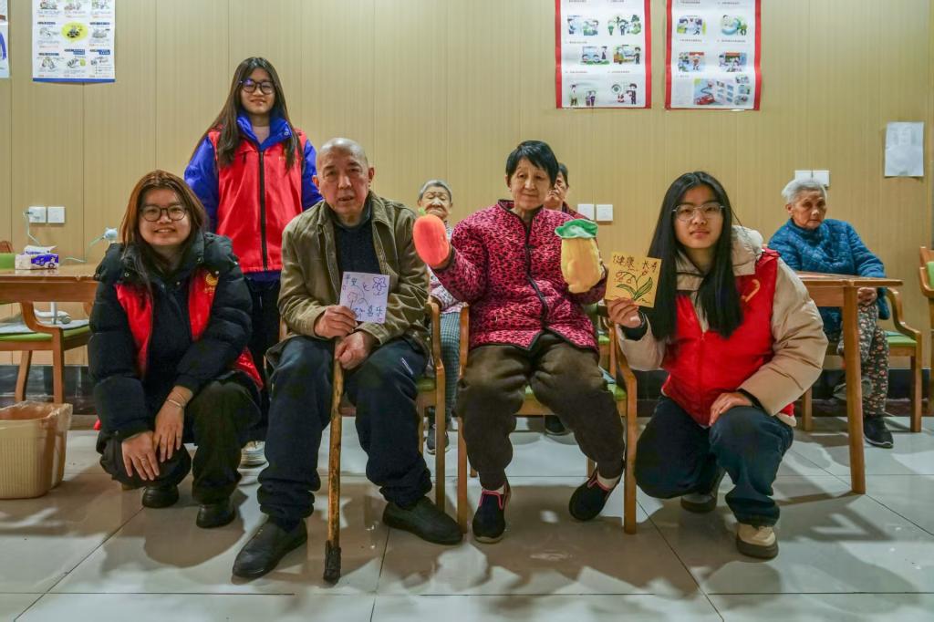 活动伊始,志愿者与老人们一同合唱《学习雷锋好榜样》,传递向上向善的正能量。随后,志愿者们结合老年人日常生理特点与生活需求,用通俗易懂的语言、贴近生活的案例,细致讲解健康养生、科学饮食、居家安全防护等实用知识,耐心解答老人们关于日常保健、疾病预防的疑问。为帮助老人们舒缓身心、增强体质,志愿者们还带领大家一同做舒缓养生保健操,动作轻柔、节奏舒缓,老人们跟着志愿者的节奏认真学习,现场充满欢声笑语。最后,志愿者们与老人们围坐在一起,共同制作平安健康祝福卡,大家一起构思内容、书写祝福、粘贴装饰,将对老人们的健康祝愿与暖心关怀融入一张张卡片之中。志愿者们陪老人唠家常、忆往昔,倾听老人们的故事,用真诚的陪伴与创意满满的互动,为老人们送去春日般的温暖,让养老院里处处洋溢着幸福与欢笑。