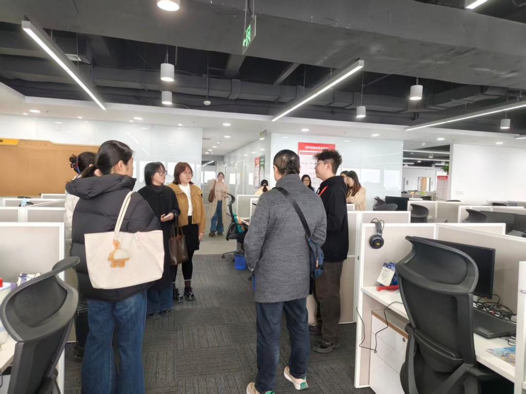 公司招聘主管带领学生参观了公司的工作、休息、就餐等环境,详细介绍了公司的发展历程、企业文化、工作范围及发展规划,重点阐述了公司在教育教学、工作创新及人才培养方面的部署。