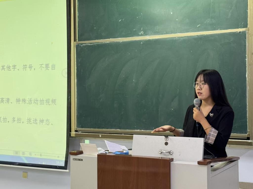 李萌月老师首先对全体学生干部过去的工作给予充分肯定,并对新学期学生工作寄予厚望。她强调,全体学生干部应德才兼备、知行合一,增强责任意识,勇于担当,勤于实践,发挥好带头作用;必须秉持着严谨细致的态度,以确保各项工作的准确性和高效性;随后,她对各部门活动的开展、新闻稿的撰写、工作的技巧和方法做了详细的培训,希望学生干部可以一起携手并进,不断超越自我,为学院发展贡献青春力量。