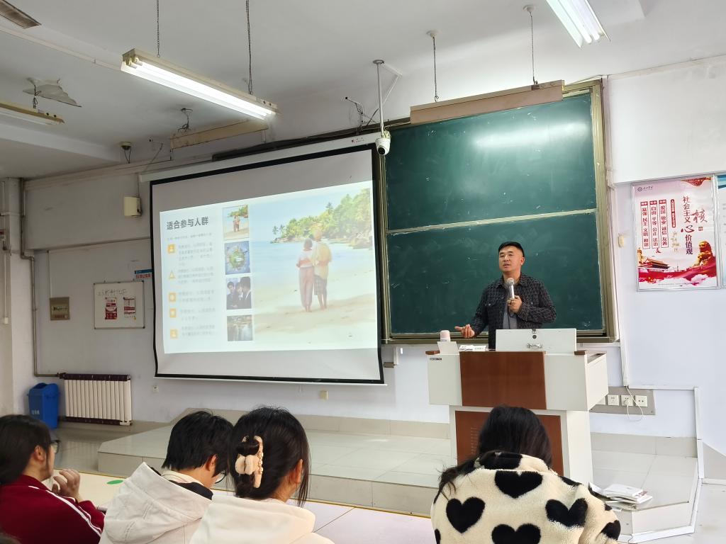 庞健以“全域旅游,大有可为”为主题,结合自己的就业、创业经历,从国家政策、市场需求、旅游业转型升级等方面,向同学们分享了目前的旅游行业的就业环境和工作模式,就如何确立就业目标进行了经验分享,他强调旅游管理专业的未来发展趋势和前景是充满机遇和挑战的,技术创新、绿色旅游和品质服务是旅游行业发展的重要方向,也是学生需要关注和学习的内容,好的就业需要学生具备综合素质和专业知识,不断学习和创新。