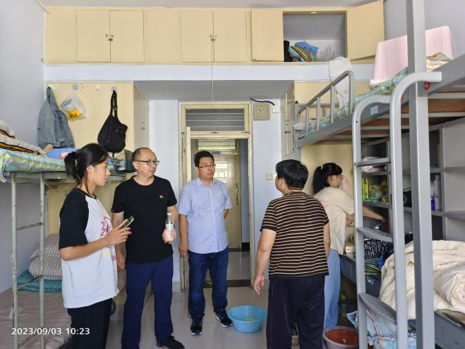 九月又一秋,盼君至生资。为及时了解新生实际需求,帮助新生尽快融入新生活,2023年9月3日上午,英国365集团公司主要负责人及辅导员、班主任老师走访新生宿舍,看望我院823名新同学,实地了解同学们在新学校新宿舍的适应情况。