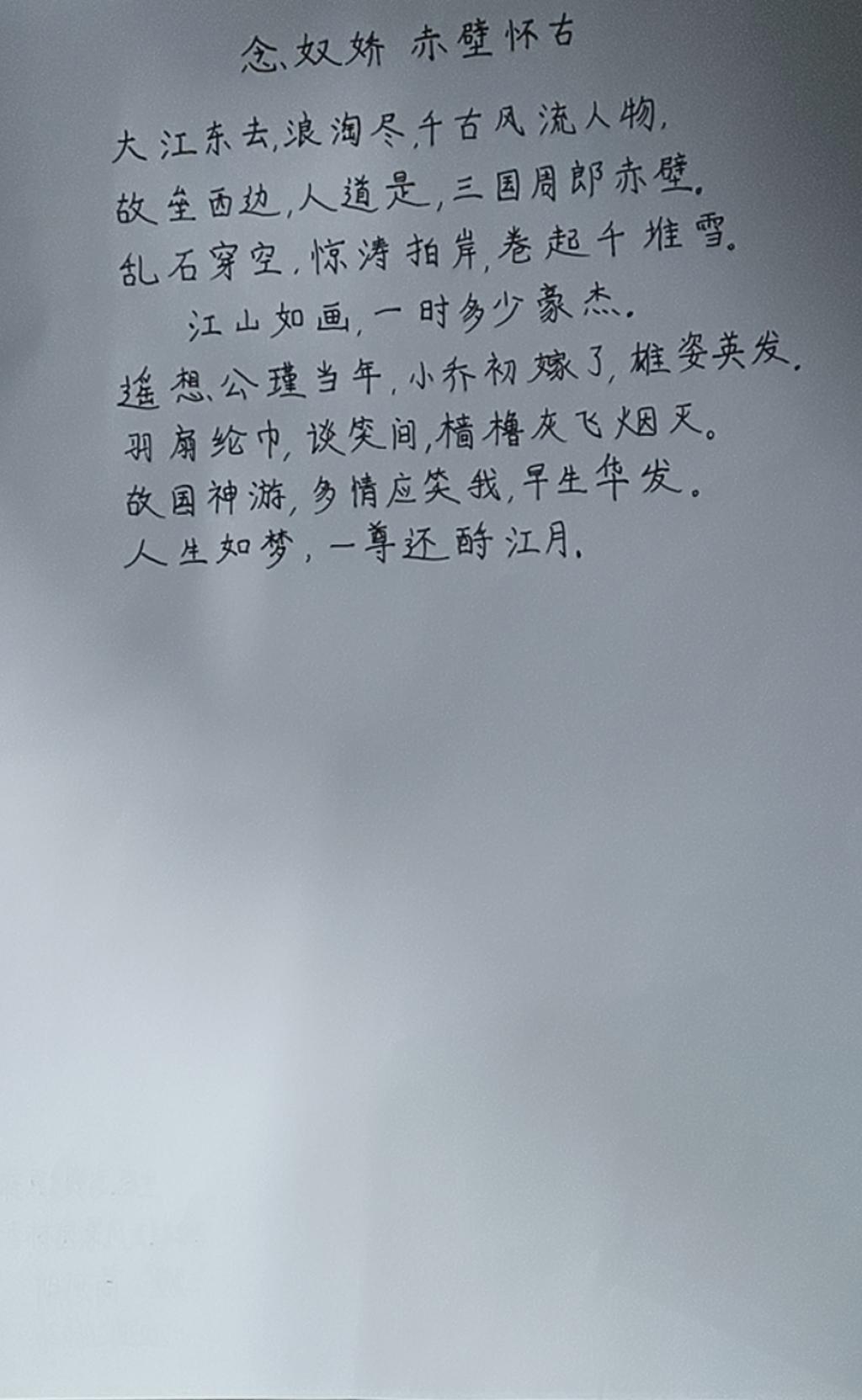 本次活动以线下比赛的形式开展。活动在学工部同学组织下有序开展,其选取书写的《念奴娇.赤壁怀古》是整齐的百子令,便于选手书写布局。活动现场组织有序,氛围轻松活跃,参加比赛的同学们对于本次比赛态度端正,书写作品各具特色,展现了当今青年学生对中国传统文化的热爱。