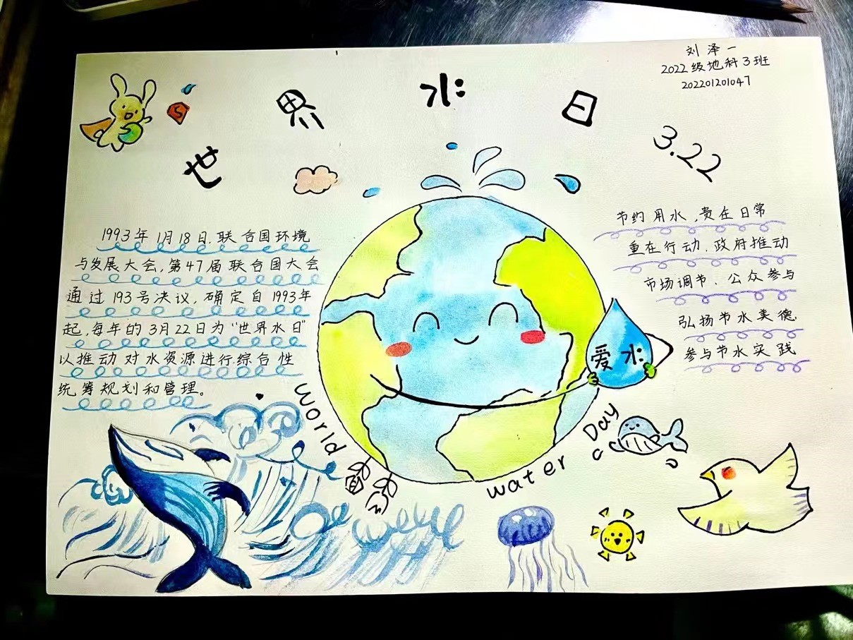 活动以节约用水,厚植广大师生节水理念为主题。同学们利用手中的画笔,通过丰富的色彩,用笔尖书写自己的节水观念。一张张白纸在同学们的笔下绽放出绚烂的颜色。活动作品内容丰富,紧紧围绕“节水”、“护水”、“地理水环境”和“水资源保护”等多种与地理相关的主题,充分展现了同学们别样风采。