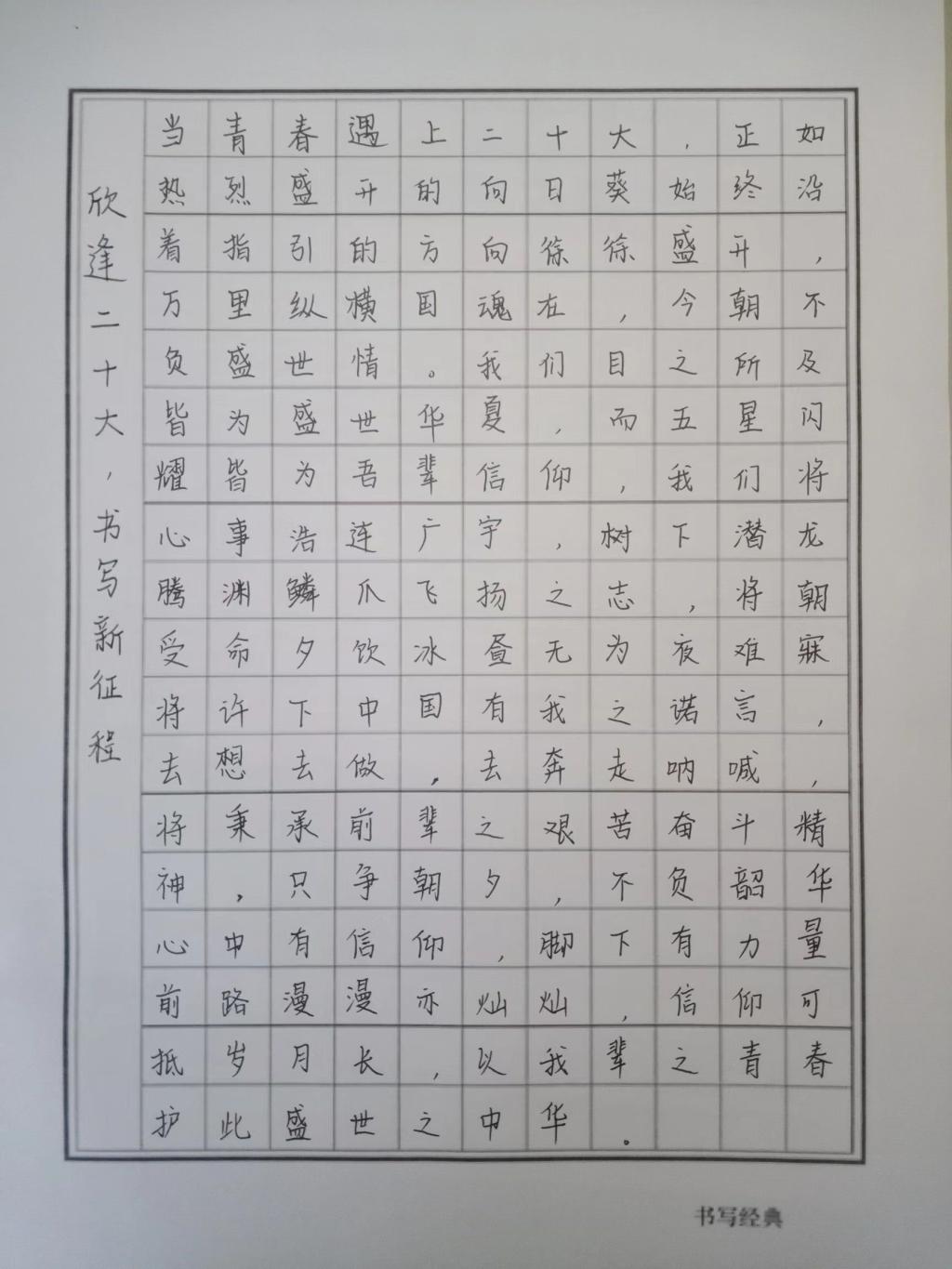 新时代青年应当砥砺前行,锐意进取,不忘习近平总书记在中国共产党第二十次全国代表大会报告中的殷切寄语。为此英国365集团公司于2022年11月10日举办线上“欣逢二十大,书写新征程”硬笔书法活动。