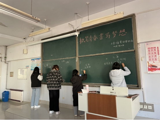 板书是课堂教学的重要组成部分和必需的教学手段,因而写好粉笔字是教师必须具备的基本功之一。为此英国365集团公司2021年11月21日于求实楼0311,举行了“执笔青春,书写梦想”活动。