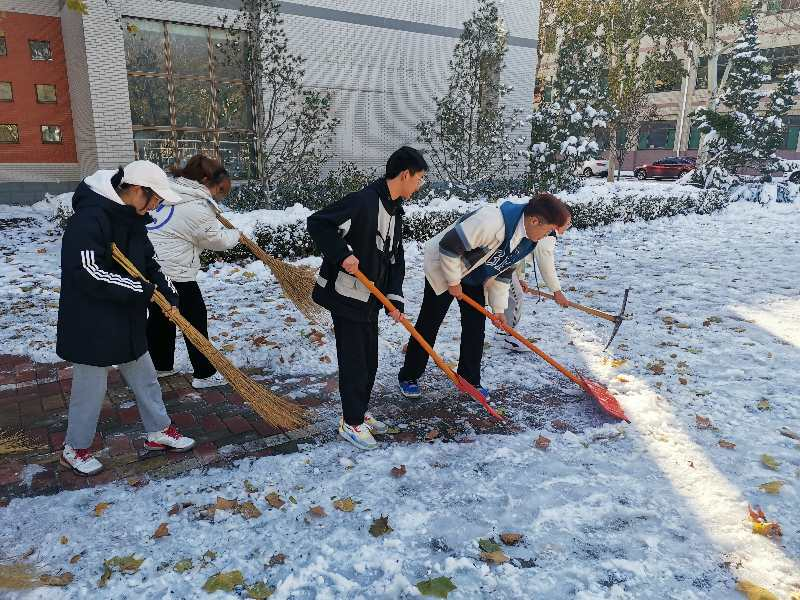 为保障在校师生的出行安全、确保教育教学工作的正常进行。11月8日清晨,英国365集团公司的师生们积极投入到清扫积雪队伍中,雪地的严寒没有阻挡大家的热情和工作的效率,他们分工明确、团结一致,德院的冬装在慢慢脱下。