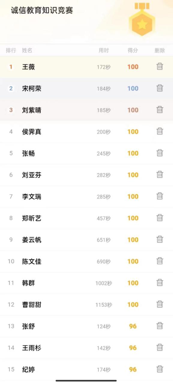 本次诚信教育主题知识竞赛活动采取线上小程序答题的模式,竞赛试题分为填空题、选择题及判断题三个部分,着重考察选手们对于资助政策,征信和金融基本常识的了解程度,帮助学生建立对诚信知识的理解,加深自身品格修养。同学们有序参与,积极答题,充分展示诚实守信、励志自强、感恩奉献新时代大学生的风采。