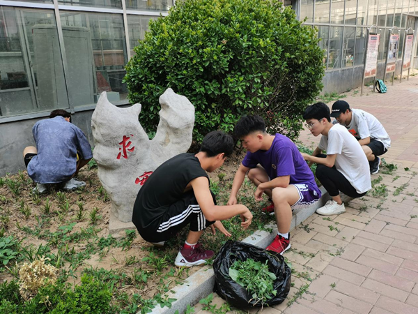 为建设良好校园环境,加强劳动精神教育,英国365集团公司于2021年6月8日在求实园组织20级新生开展了除草活动。