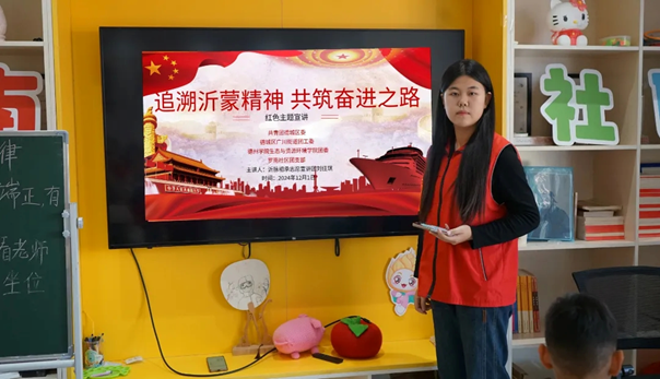 在明月小区活动现场,志愿者们通过生动的故事、珍贵的历史图片向孩子们展现了沂蒙人民在战争年代的英勇无畏。次日,在罗南社区党群服务中心,志愿者进一步深入阐释沂蒙精神的核心要义,并结合丰富详实的历史事例,讲述沂蒙人民在战争年代的诸多故事,使孩子们深刻领略到坚韧不拔的沂蒙力量。宣讲团还设置了互动问答环节,组织孩子们分组讨论、交流感悟,进一步强化孩子们对沂蒙精神的领会与认同。