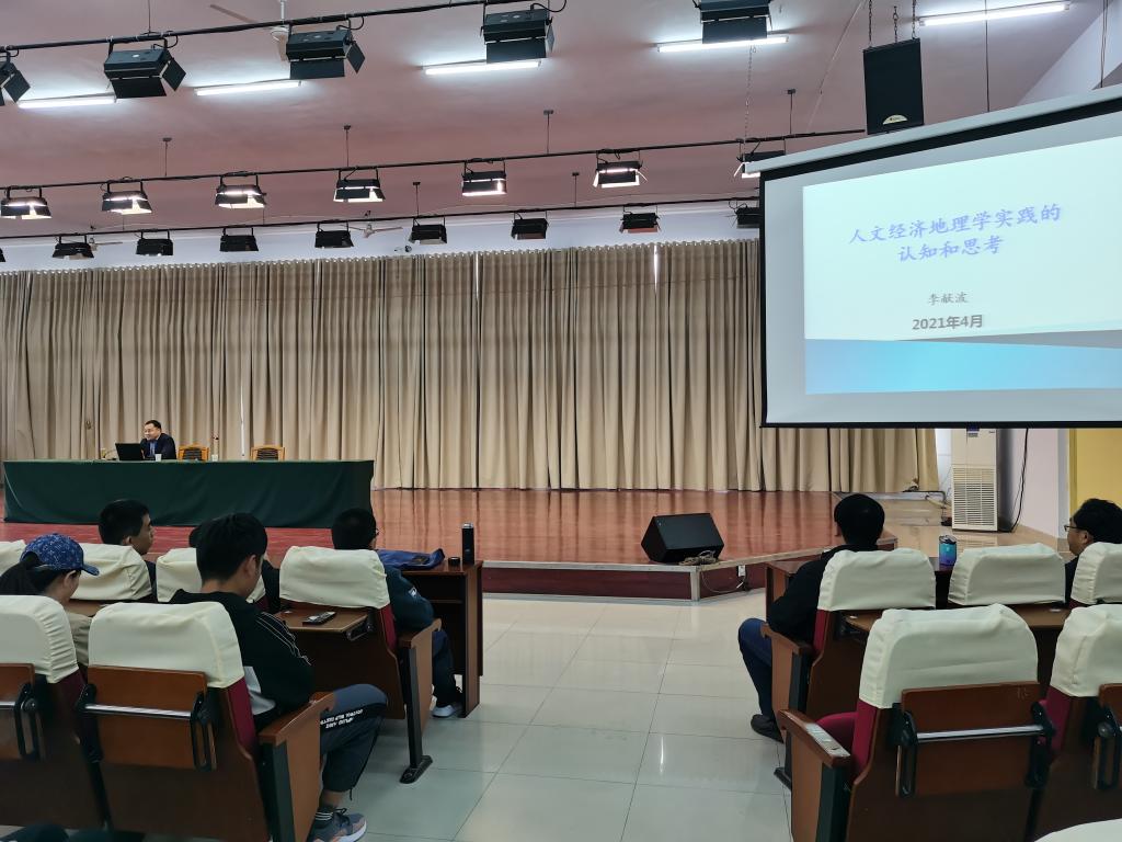 本次活动报告的课题为“人文经济地理学实践的认知与思考”,特邀2002级校友李献波博士为大家进行讲授,我院全体教师及20级同学共同参与。活动伊始,李献波博士表达了对母校的感恩与思念。随后,向同学们讲述了地理学科的就业格局和现在的发展方向。并结合自身经历向同学们分析讲解了我们所在的世界的新常态、我国拉动经济发展颁布的政策及社会发展现状。最后,李献波博士向同学们分享自己在学习中实践的案例,同学们收获良多。