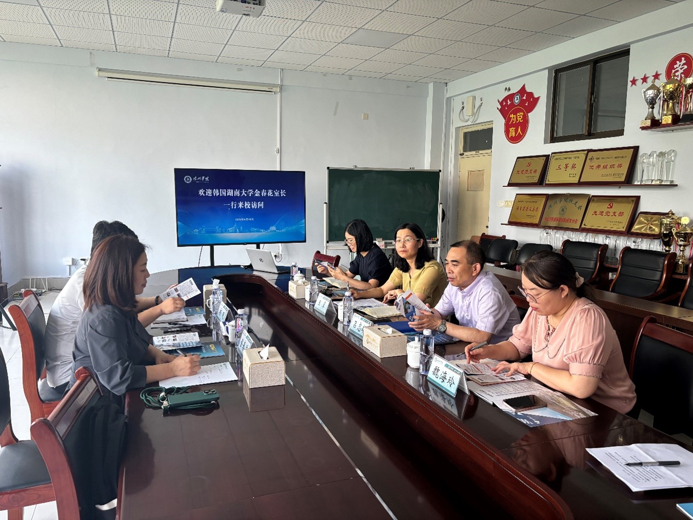 双方围绕旅游管理专业学生赴韩国湖南大学长短期交流、专升本、师生交流、语言学习等内容进行了深入研讨。